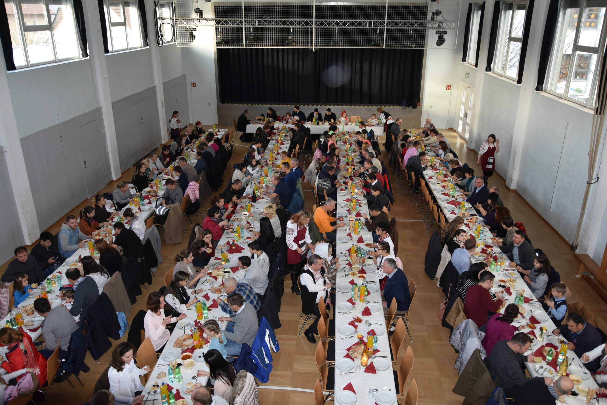 Duminică dimineața vom săvârși Sf. Liturghie conform programului obișnuit, urmând ca după rugăciune să ne bucurăm împreună la agapa frățească.